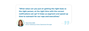BrightTALK uses LeanData to automate the process of getting the right leads, to the right reps, at the right time using lead-to-account matching, and then routing various objects such as leads, contacts, and accounts to SDRs and AEs. Alerts are sent via email and Slack to ensure the team follows up and time-based nodes help to enforce SLAs.