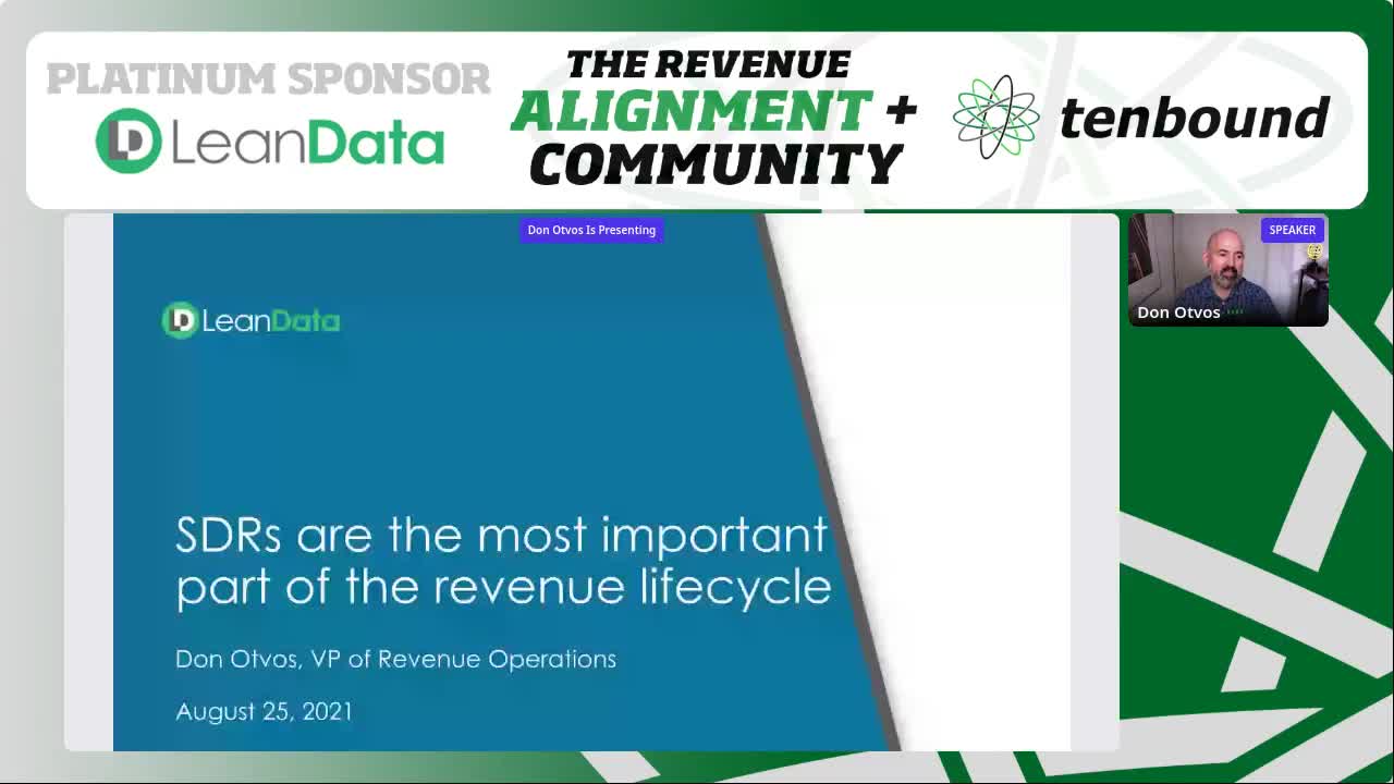 Don Otvos is on the leading edge of Revenue Alignment and has realized a startling truth – his coordination with the Sales Development team is critical to the success of his overall RevOps strategy. Being a former SDR himself, he has laid the groundwork for success through his regular meeting cadence, feedback loop and iteration of the process. Join Don to dive in on how you can replicate this in your organization to achieve massive results.